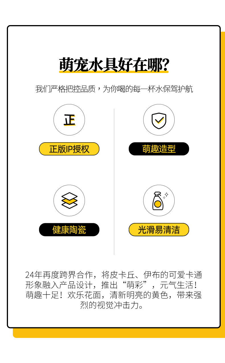 种类:顺祥宝可梦款吃早点杯 国际品牌:顺祥瓷质 施工工艺:釉上贴花+釉下描线+刷色 原材料:高的温度陶瓷制品 产自:全国潮州 适用于范围图: 红外光炉、烤箱、洗碗机等