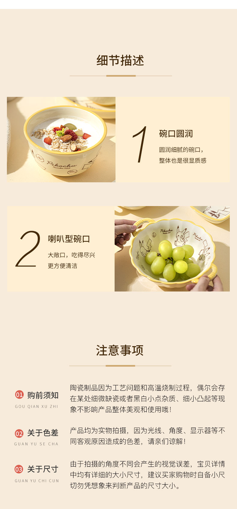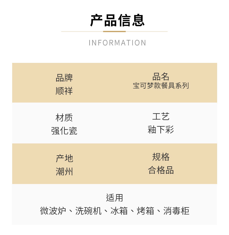 名字大全:顺祥宝可梦款童真系列作品碗筷 国产品牌:顺祥淘瓷 新工艺:釉下彩 面料:低温瓷砖 出产地:我们潮州 选用规模: 徽波炉、烤箱、洗碗机等