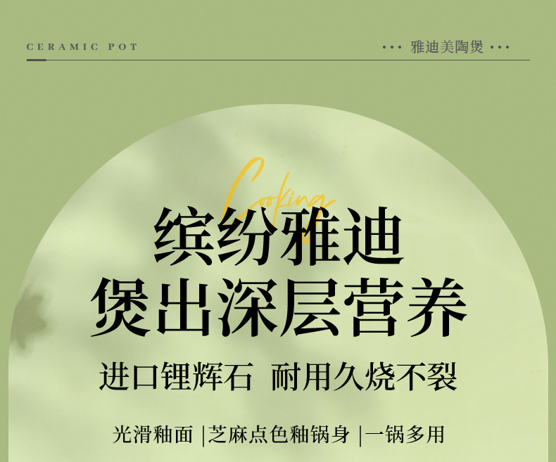 名号:烂漫雅迪美陶煲 产品品牌:雷火竞技app图片 施工工艺:色釉 原材料:常温陶瓷图片+耐温锂辉石 產地:在我国潮州 采用范围之内: 燃气炉、电陶炉、红外光炉
