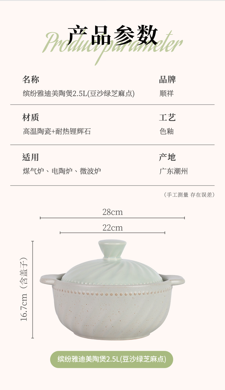 名号:烂漫雅迪美陶煲 产品品牌:雷火竞技app图片 施工工艺:色釉 原材料:常温陶瓷图片+耐温锂辉石 產地:在我国潮州 采用范围之内: 燃气炉、电陶炉、红外光炉